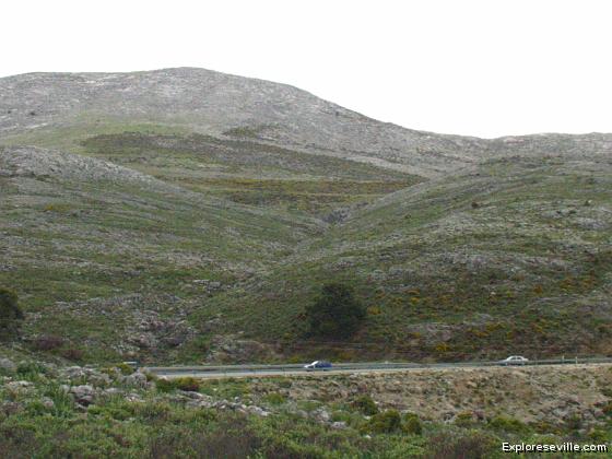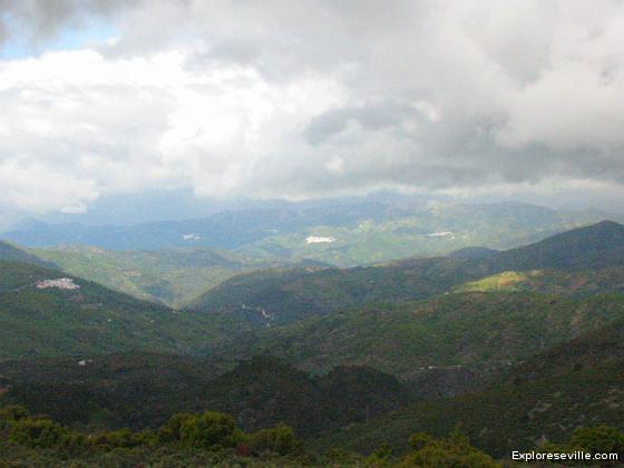 It was cloudy, but you can see several white patches in the mountains. Not snow, rather small white villages.